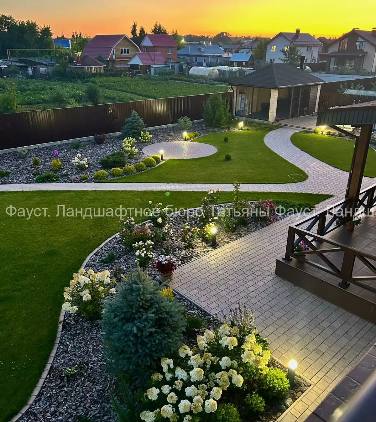 Сад с красивыми закатами