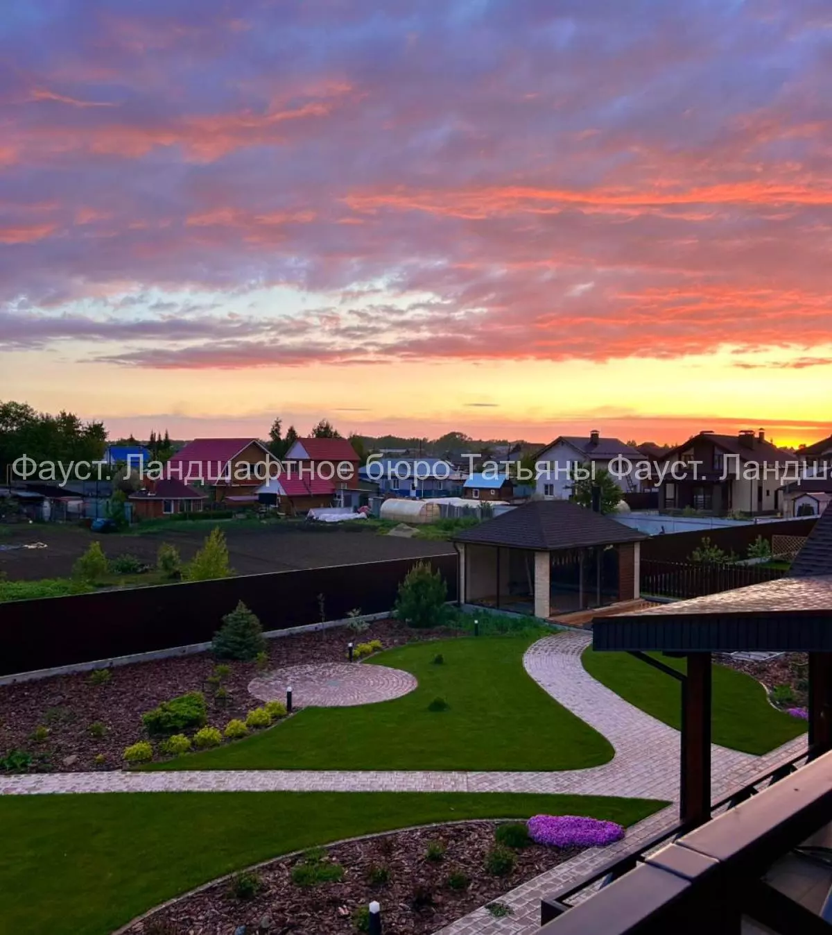 Сад с красивыми закатами